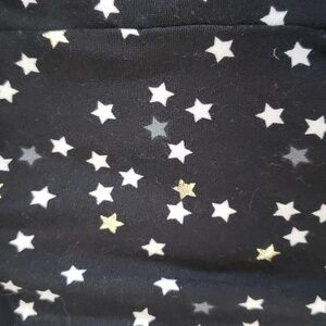 Black leggings that can be worn year-round with white, gray and gold metallic stars
