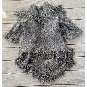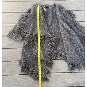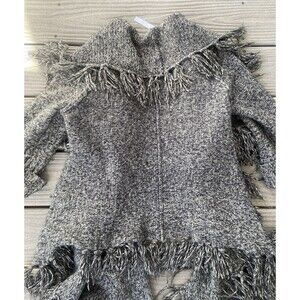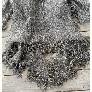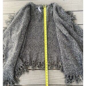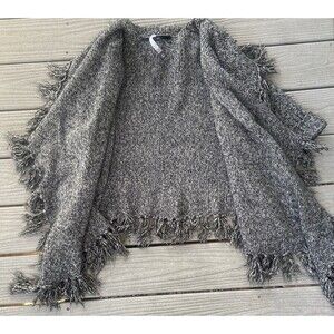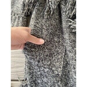 Kensie Grey Marled Fringe Knit Open Front Cardigan Sweater L Asymmetrical