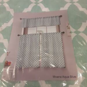 Add a touch of elegance to your home décor with this Kensie Home Cafe Tier Set 3pc in Moana Aqua and White. The set includes three pcs that provide ample coverage for any room in your home. The lattice pattern adds a unique texture to the fabric, making it a perfect addition to any room. The set is ideal for those who want to add a pop of color to their home without compromising on style. The Moana Aqua and White color combination is fresh and vibrant, making it a great choice for any room in your home.Open package