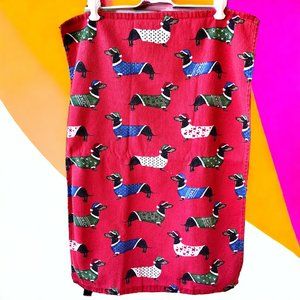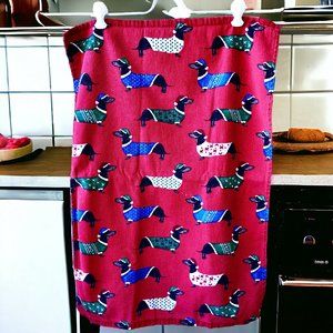 Kensie Home Christmas set of 2 hand/tea kitchen towels. Dachshund dogs print on one side - dogs are wearing sweaters and Santa hats.