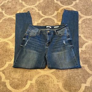 Casual Kensie jeans with a relaxed fit. Subtle distressed accents. Ideal for everyday style.
