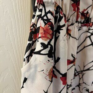 Kensie Japanese Cherry Blossom Tree Floral Print Dress with Pockets Size Small