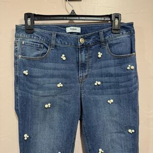 Kensie Jeans 6/28 Pearl Front Studded Skinny Ankle Jeans Inseam 27.5" Rise 9" Waist 14.5" Great Condition