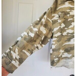 Kensie Jeans Camo Camouflage Jacket Raw Hem Fall Cute Women's Size XL