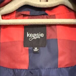 Kensie Jeans red and blue checkered vest. Zip up front. Tow side snap shut pockets. Size medium. Never used. Smoke free/pet free home.