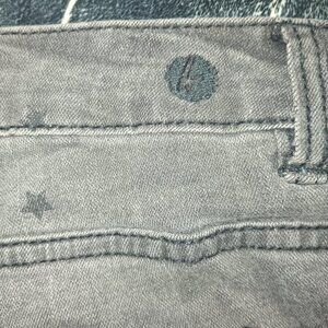 Star pattern on both front and back of Jeans. Stitched logo on back of jeans. More of a black wash color, with the stars being a darker black color.