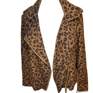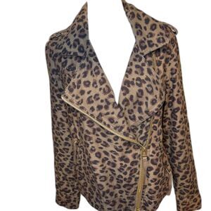 Kensie Jeans Leopard Print Assymetrical Zip Jacket Womens Lightweight Stylish