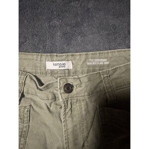 Kensie Jeans The Savannah High Rise Flare Crop Pants Women's 6/26 Green Canvas