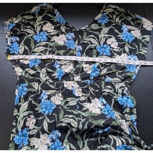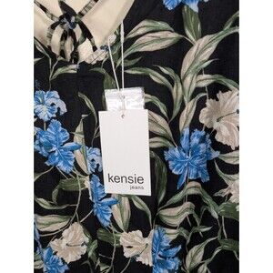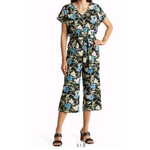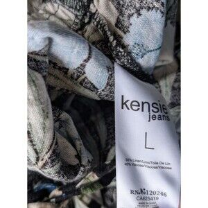 Kensie Jeans Tie Back Linen Blend Jumpsuit In Hibiscus Sky Combo Large