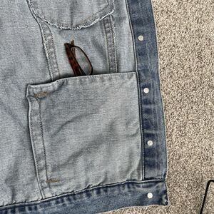 Kensie Jeans Vintage Luxe Denim Vest Stretch Trucker Frayed Size Large New