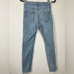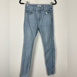 Gently Used Kensie The Ultimate High Rise Skinny Jeans. These are a women's 2 / 26. Light denim color. Vertical stripe pattern for a unique look. Intentional fraying at the ankles. Cute pair of jeans!