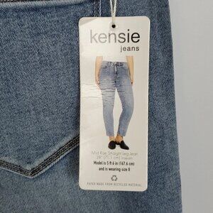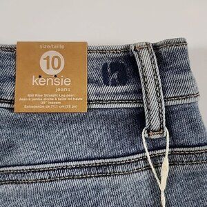 New with tags, Kensie Jeans women's Mid Rise Straight Leg jeans in a light blue denim stretch, size 10.