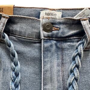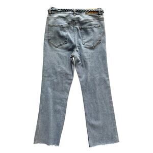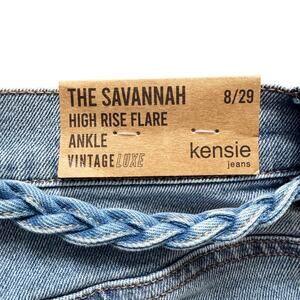 High rise, preppy, casual, cabincore, light wash, Kensie Jeans, Vintage Luxe, Savannah, High Rise Jeans, Flare Ankle Jeans, New Castle Wash, Braided Belt, Women's Jeans, Size 8/29, Light Wash Denim, Bootcut Jeans, Contemporary Jeans, Fashion Jeans