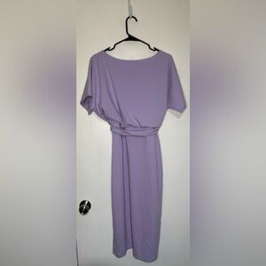 Elegant Kensie dress in soft lavender. Features a stylish waist tie. Perfect for any occasion.