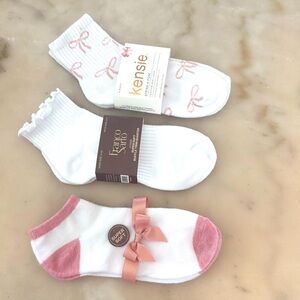 Kensie Luxe Bow Print Quarter Socks Franco Sarto Ruffle Trim 3 Pack Sz 4/10