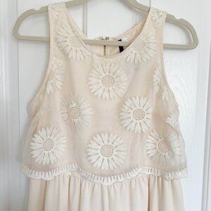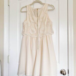 Kensie Mini Dress Womens Size Medium Mesh Overlay Cream Embroidered Lacey Flower