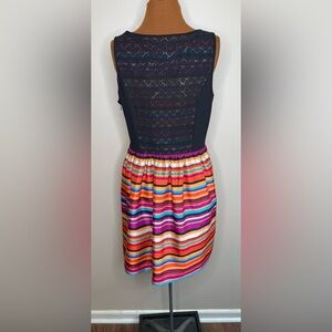 Kensie Multicolor Striped Dress Black Bodice Striped Skirt Size Large