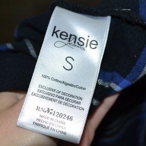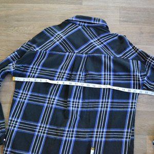 Kensie Oversized Frayed Stud Button Plaid Blue Black Flannel Size Small
