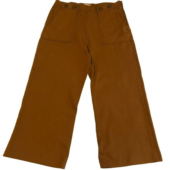 Kensie Pants 14/32 Brown High Waist Wide Leg Pockets Boho Jeans Crop/Ankle
