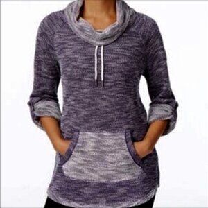 Kensie Performance Drawstring Cowlneck Half Sleeve Sweater Kangaroo Pocket Small