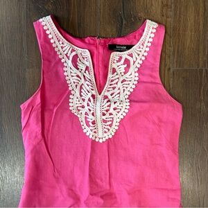 Kensie Pink Sleeveless Linen Blend Dress with White Lace Detail SZ 8
