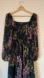 This elegant black sundress by Kensie features a romantic pink and green floral print on a sophisticated black background. The dress boasts a square neckline and bishop sleeves, adding a touch of vintage charm. Perfect for a wedding guest or cocktail event, its flowing silhouette ensures graceful movement.