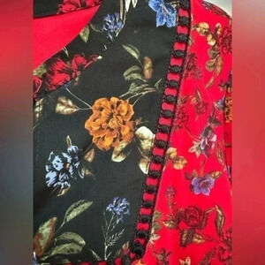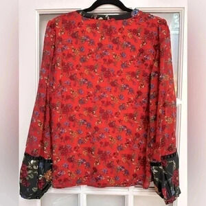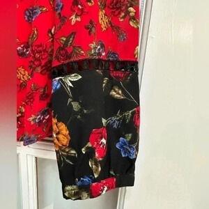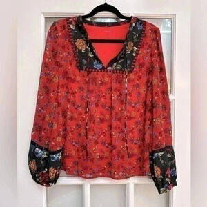 Kensie | Red & Black Floral Boho Bohemian Blouse Size Medium M