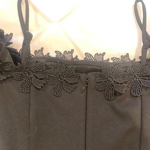 NWT Beautiful black scuba dress by Kenzie. Pretty lace detail around the shoulders. Flattering fit! Size 4.