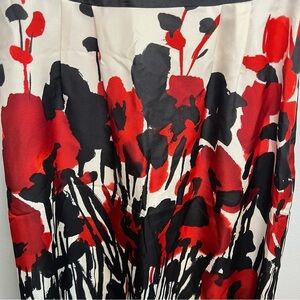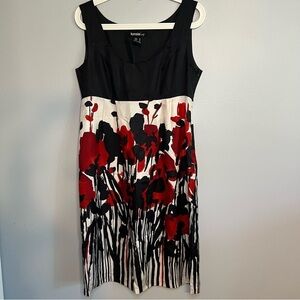 Kensie Silk Floral Sleepless Lined Midi Dress Black Red Office Cocktail Size M