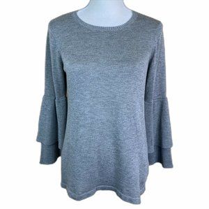 Kensie Gray Stretch Crew Neck Flare Tiered Ruffled Sleeves Sweater Women's S