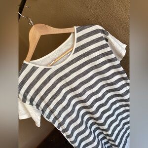 Casual striped t-shirt in gray and white. Perfect for everyday wear.