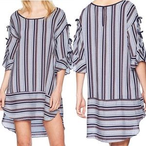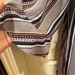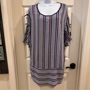 Kensie Striped and Polka Dot Blue Tunic With Ribbons / Fluted Sleeves Large