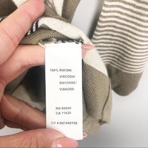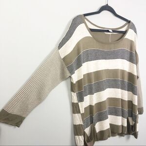Adorable tan, cream, and black lightweight sweater with different stripe patterns. Cute oversized pocket detail. New with tags!! Size Medium.
