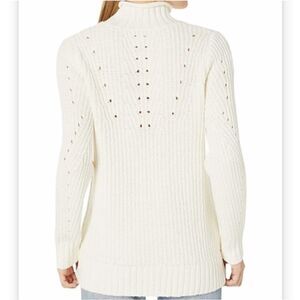 Kensie Sweater Womens Size Small Pointelle Knit Turtleneck Pullover in Vanilla