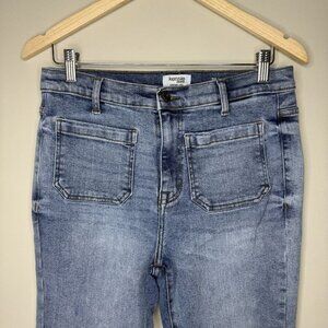 Kensie The Savannah High Rise Flare wide leg classic light to medium wash jeans. Retro style with square front pockets. Stretchy. Comfy. Classic. In excellent condition!