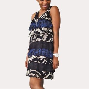 Kensie Tiered Ruffle Exposed Zipper Mini Dress Abstract Print L bv