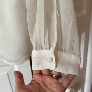 ✨ Kensie White & Black Long Sleeve Blouse Large ✨