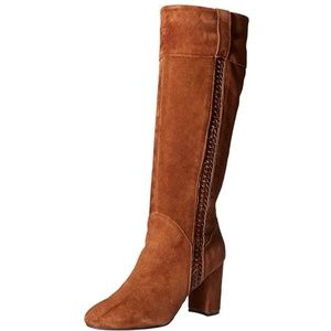 Gently Worn Kensie Women's Bernadette Slouch Boot. Size Cognac. 100% Suede. Rubber Sole. Braided Detail. Inside Zipper. Suede Wrapped Heel. No Rips Or Holes But There Is Minor Scuffing. Suede Is A Bit Rough In Some Spots. Lots Of Life Left. Soles Are In Superb Condition. Please See Pictures For Flaws.