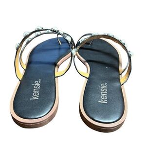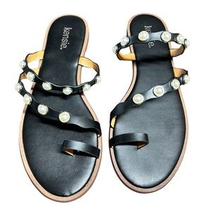 Kensie Womens Black Toe Strap Asymmetrical Scalloped Padded Maltese Open size 10