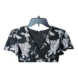 Kensie Women's Black White Floral Short Sleeve Surplice Neck Wrap Dress Size 6