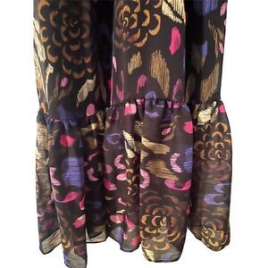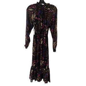 Keywords: Kenzie, belted dress, chiffon dress, flounce hem, floral print, party dress, cocktail dress, women's fashion, midi dress, V-neck, long sleeve, multicolor, size 2, new with tags, elegant dress.