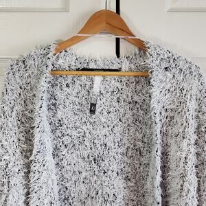 Kensie Women's Gray Black Eyelash Cardigan Sweater Size LG Open Academia Soft