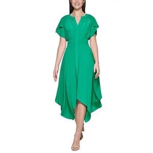 Kensie Women’s Handkerchief-Hem Midi Dress, Green, 4