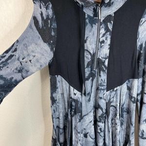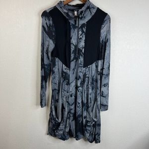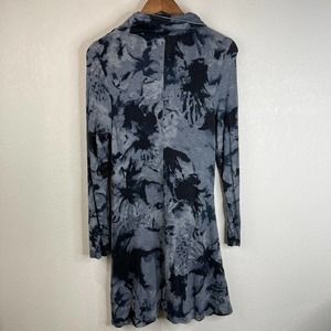 Kensie Womens Long Sleeve Zip Up Dress Medium Drape Boho Tie Dye Gray Lagenlook