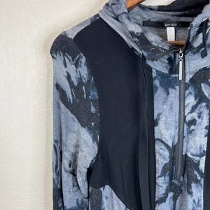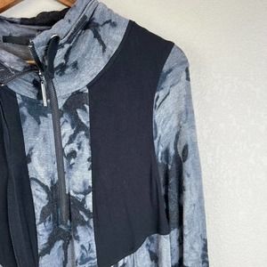 Kensie Womens Long Sleeve Zip Up Dress Size Medium Drape Pocket Tie Dye Black