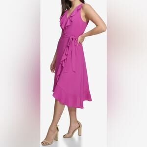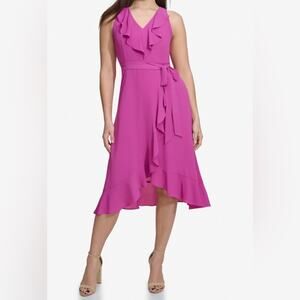 Kensie Women's Ruffled Tie-Waist Faux-Wrap Dress Fuchsia Sz 10 NWT