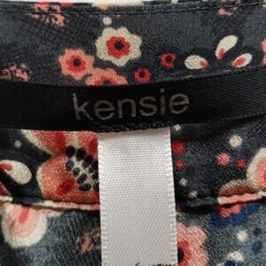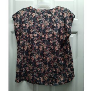 Kensie Women's Size Medium Black Pink Peach Floral Cap Sleeve Blouse