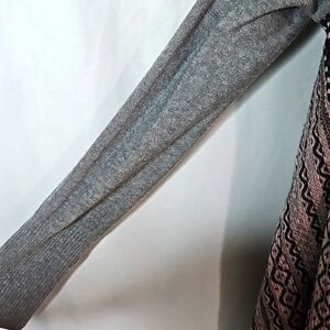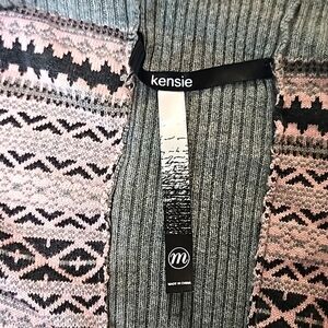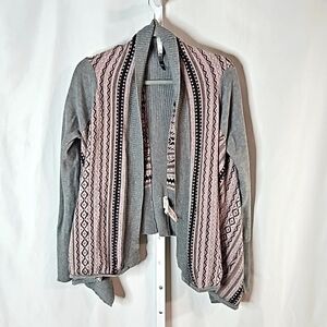 Kensie Women's Sweater Size Medium Fair Isle Shark Bite Hem Pink Gray Cardigan