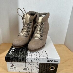 Kensie Women's Taupe Block Heel Lace Up Bootie w/ Plush Lining Size 9.5 NWT