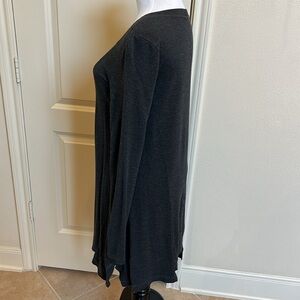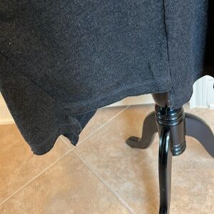 Super cute and soft! Gray color goes with everything. Raw bottom asymmetrical edges. Use with a belt. Can use as dress or over leggings. Cute with boots.
